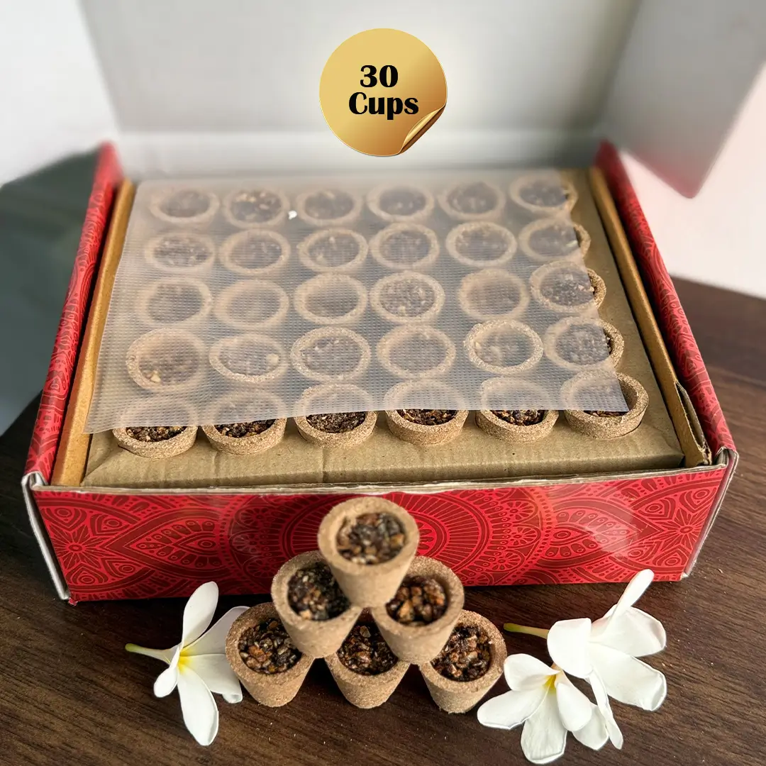 Embrace the transformative experience of natural ingredients and centuries-old traditions with the Sambrani Hawan Cup.