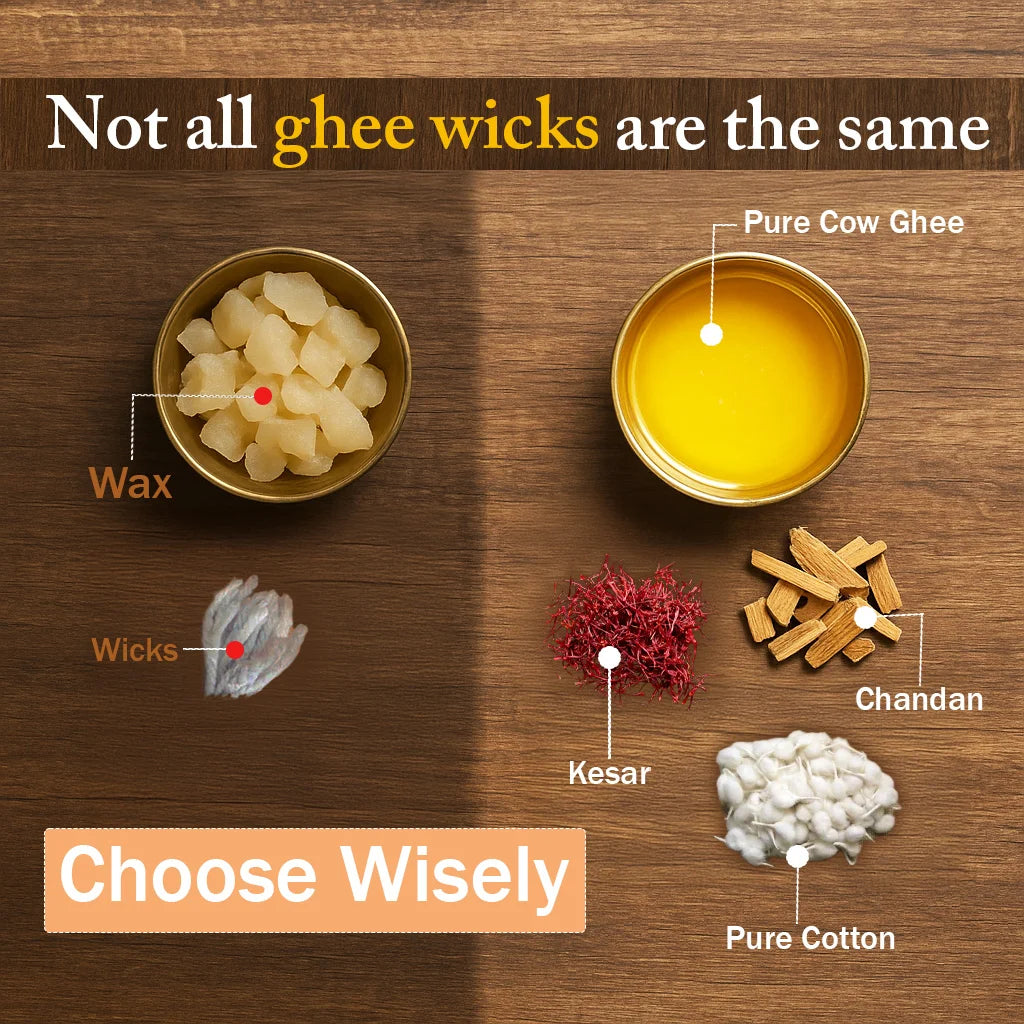 - 100% wax-free and hygienic: Completely natural with no added waxy material. Just purify the house and produce positivity. No artificial fragrance is used. Ghee Wicks from Certified Indian Company.
